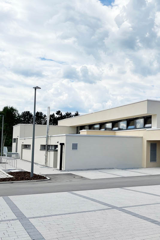 Auch die Neugestaltung des Vorplatzes mit Neuanlage des Parkplatzbereiches und Trafostation waren im Zuge der Sanierung umzusetzen, es ist nun ein multifunktional nutzbarer Vorplatz enstanden, der auch als Festplatz für die Gemeinde und für Vereine genutzt werden kann.