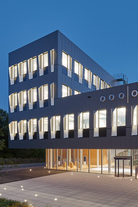 Im neuen Technologiepark Tübingen entstand in den Jahren 2017 bis 2019 die neue Unternehmenszentrale der OVESCO Endoscopy AG. Neben Büro- und Besprechungsräumen wurde ein qualifizierter Raumraumbereich geschaffen. Im südlichen Bereich schließt sich ein großräumiges, zweigeschossiges Logistikzentrum an. Eine Caféteria und ein großzügige Dachterrasse runden das Raumangebot ab. Zur Energieversorgung des Gebäudes wurde eine Trafostation in Kompaktbauweise errichtet. Zusätzlich speist eine PV-Anlage mit 50 kWp in Ost-West-Ausrichtung ins eigene Netz ein, überschüssige Energie wird ins Netz der Stadtwerke Tübingen eingespeist. Mit modernster Medientechnik ausgestattet wurden sämtliche Besprechungs- und Konferenzräume.
