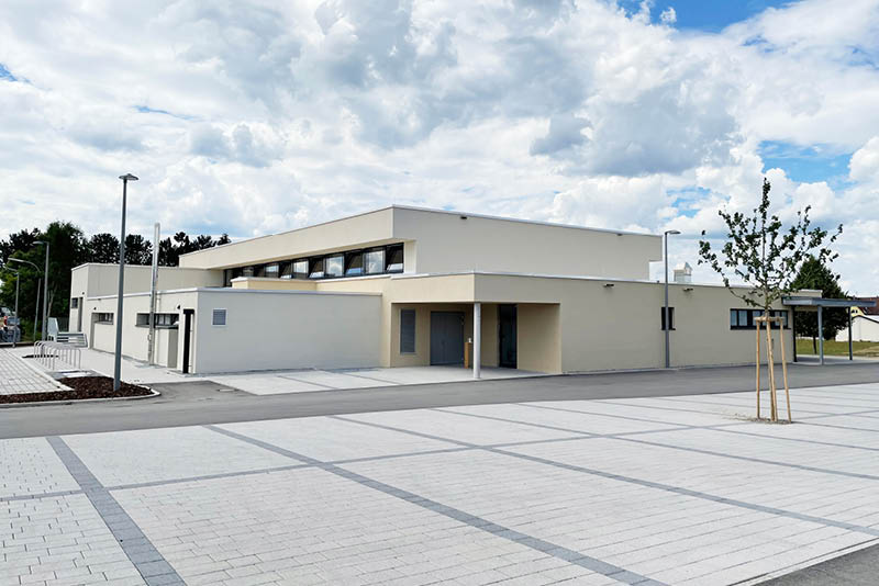 Auch die Neugestaltung des Vorplatzes mit Neuanlage des Parkplatzbereiches und Trafostation waren im Zuge der Sanierung umzusetzen, es ist nun ein multifunktional nutzbarer Vorplatz enstanden, der auch als Festplatz für die Gemeinde und für Vereine genutzt werden kann.